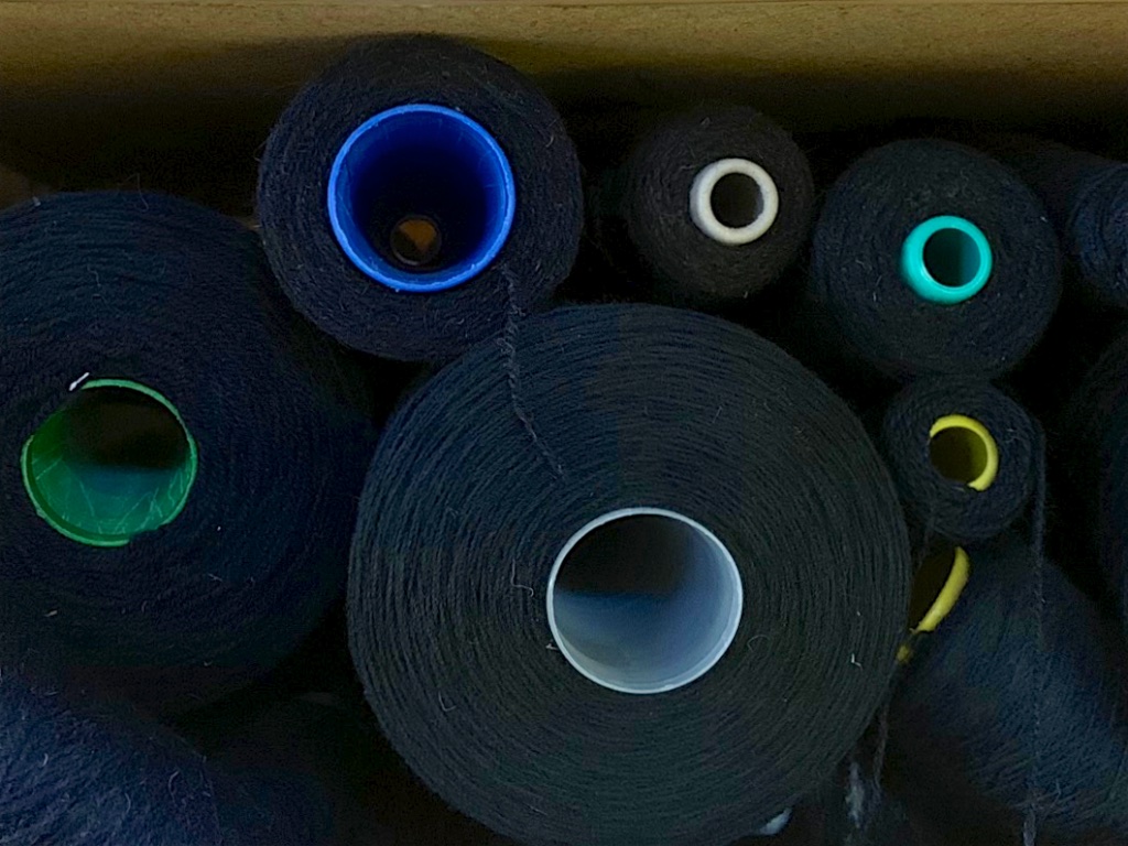 Ook aandacht voor de afwerking. Een strook met linnenbinding en sumac die is omgeslagen. Het kleed heeft in principe de zwarte kant als voorzijde, maar de blauwe kant mag er ook zijn.